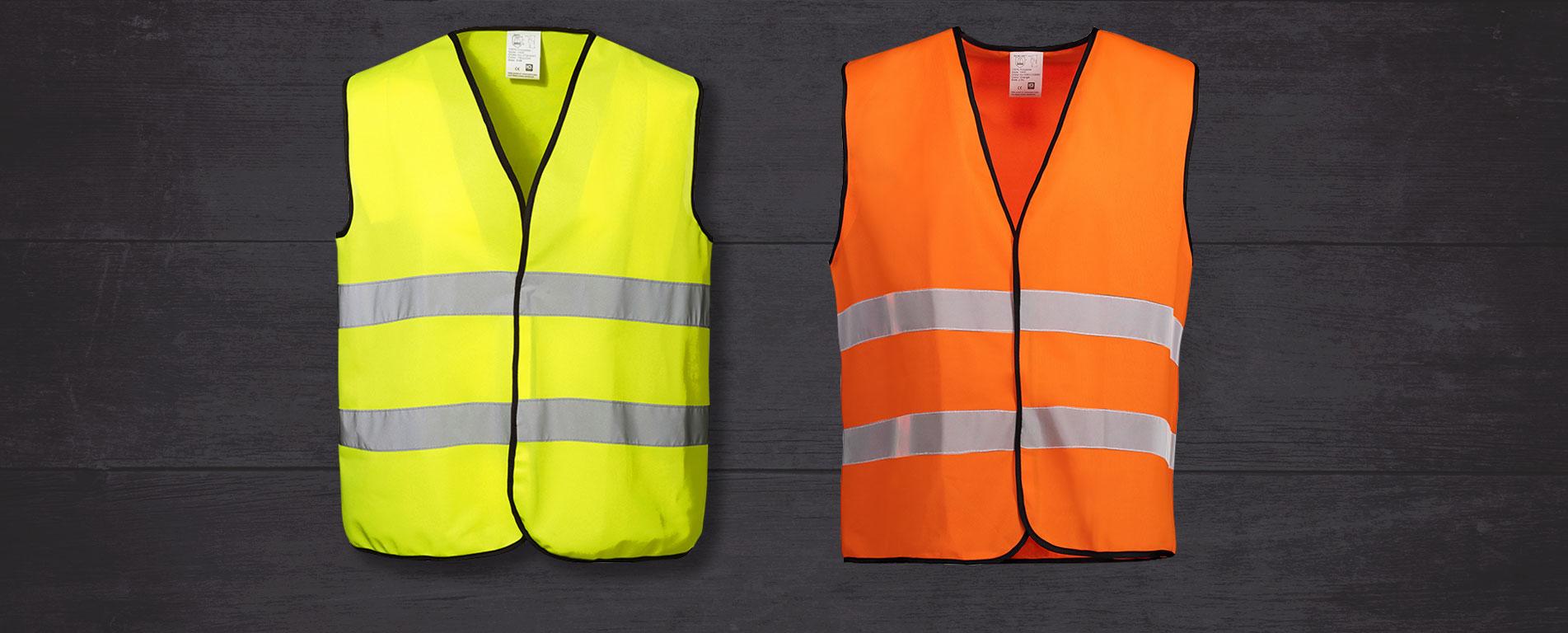 Fluoreszierende Arbeitsweste mit Klettverschluss vorn.