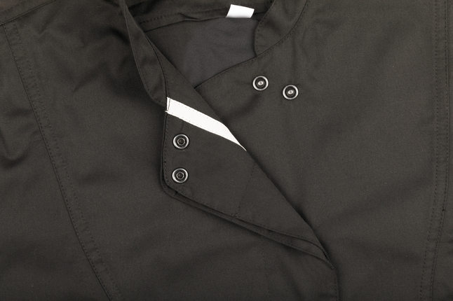 - Schürzenhalter am hinteren Kragen mit Schnappverschluss