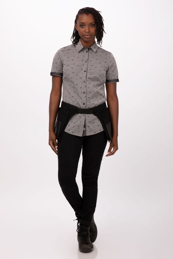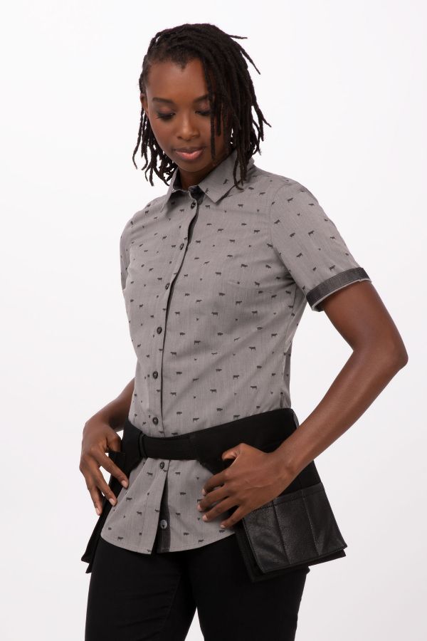 Die modernen Halbarm-Shirts der OMAHA Kollektion mit Tierdruck sind eine willkommene Abwechslung in Sachen Arbeitsuniform. Die kontrastfarbene Knopfleiste runden den Look ab. Wer möchte kann die kontrastfarbenen Armbündchen wenden.Kurze ÄrmelLinke BrusttascheRückenpasse mit FaltenFarblich angepasste KnöpfeKontrastfarbe am Krageninnenband, an der Knopfleiste und an den Armbündchen