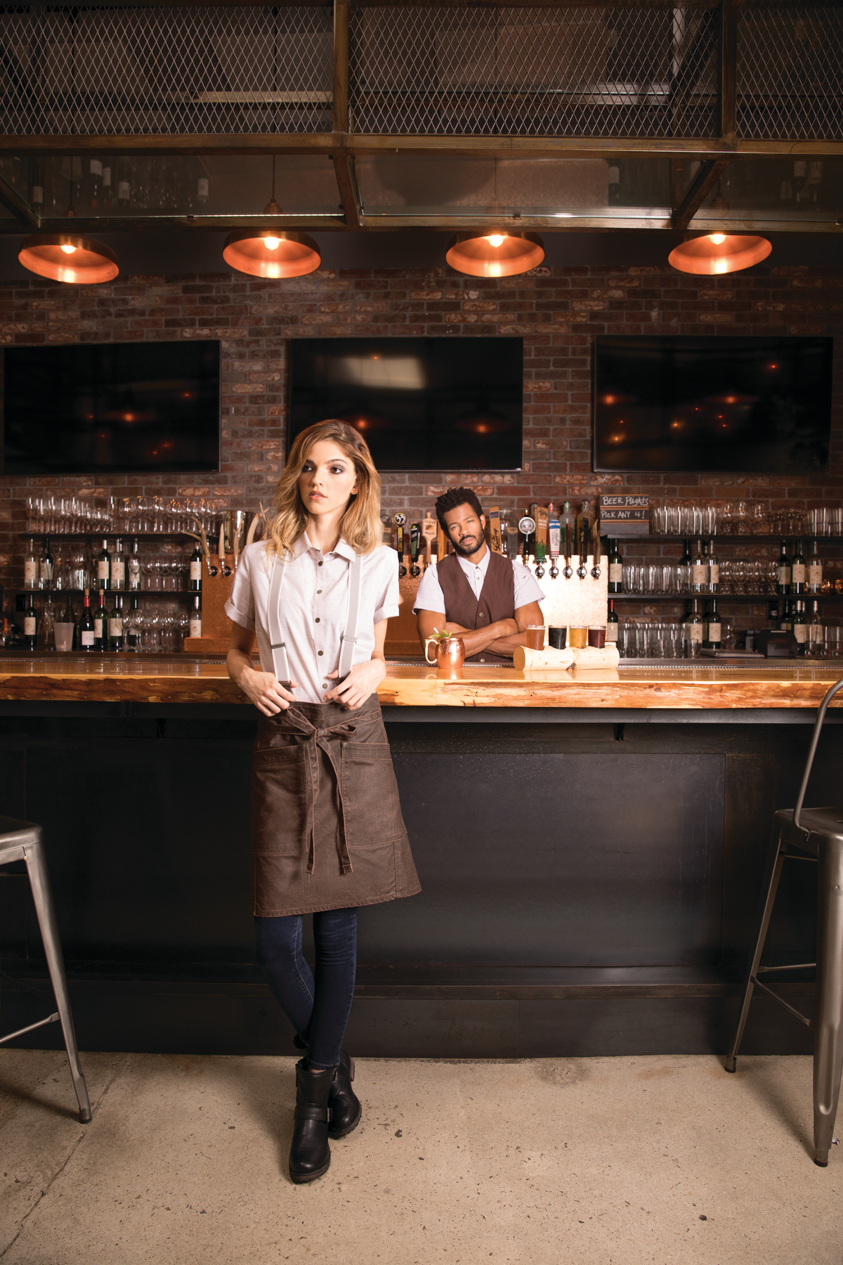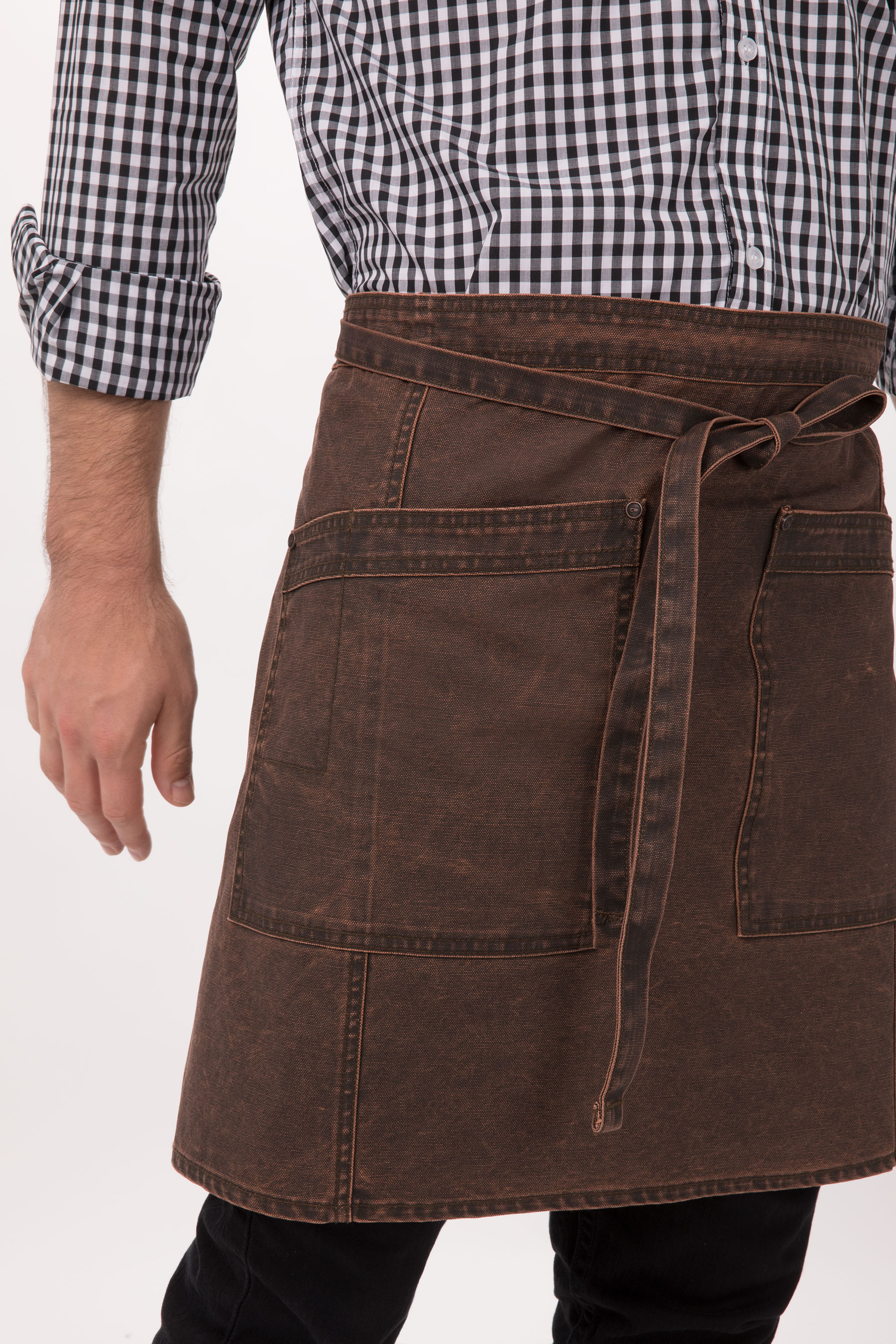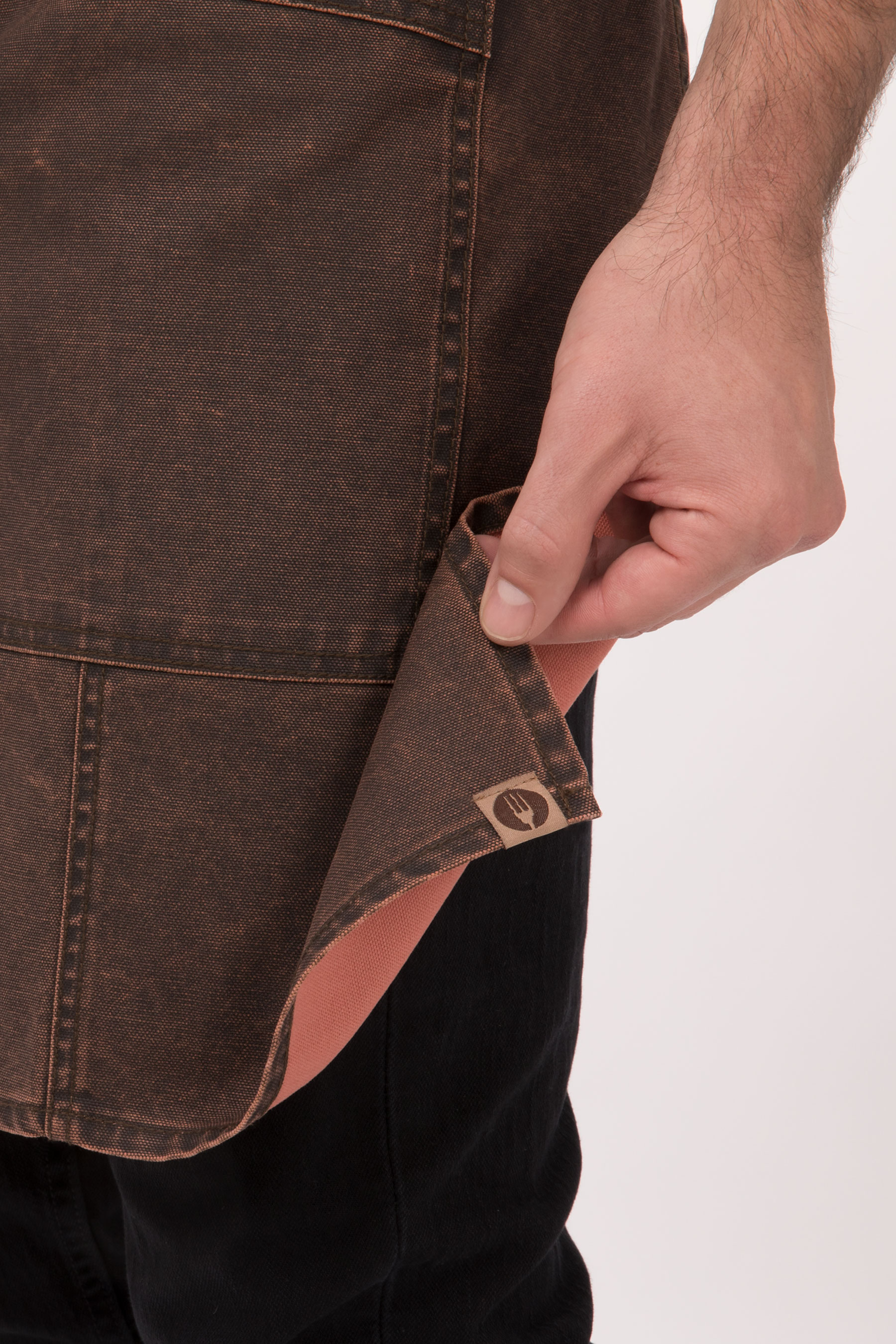 - In 3 Varianten verfügbar: Als Cross-Back, Bistroschürze und als Hüftschürze in Olivgrün und Rostbraun