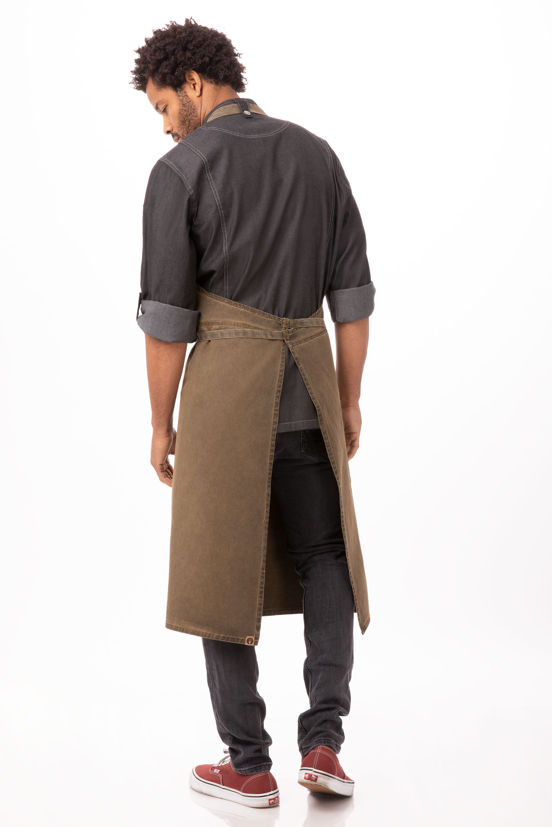 Das Geniale an dieser Schürze ist das vollständig anpassbare Nackenband. Einfach einen Knoten in der oberen linken Öse befestigen. Ziehe einfach das Band durch das Loch, anpassen, Knoten, fertig.