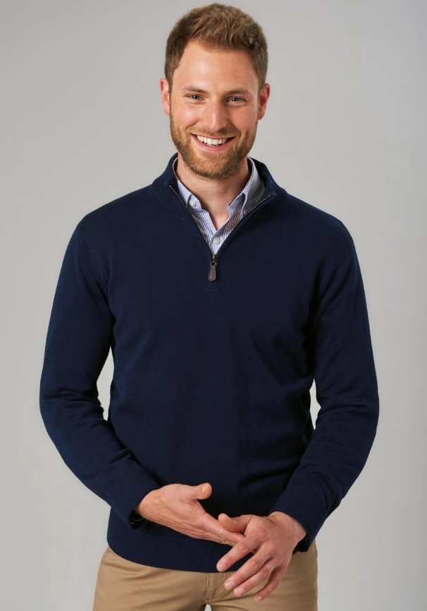 Pullover mit 1/4-ReißverschlussReißverschluss aus KunstlederGerippter HalsBündchen und SaumKontrastierendes Detail im NackenHerrenmodell Artikel: 7898