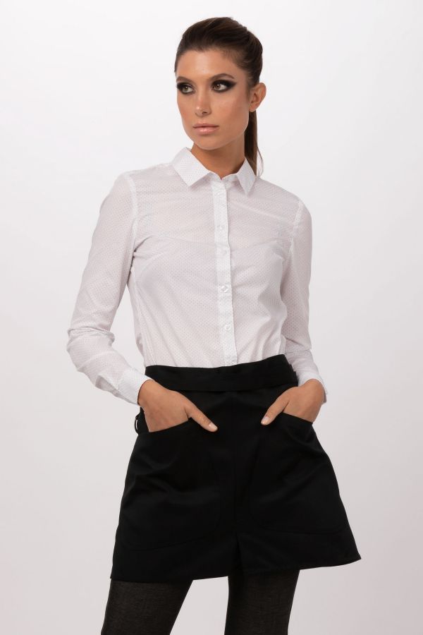 Cool Vent™-Einsätze an den Seiten bis hoch zu den Schultern„lite“-Twill-GewebeStehkragenKurzarmEinreihiges Design mit verdecktem YKK-ReißverschlussLatzschürzenschlaufe im Nacken mit graviertem DruckknopfAbgerundete, zweiteilige Thermometertasche auf dem linken OberarmAbgerundete Handy- oder Notizblocktasche auf dem rechten OberarmSeitliche Bequemlichkeitsschlitze
