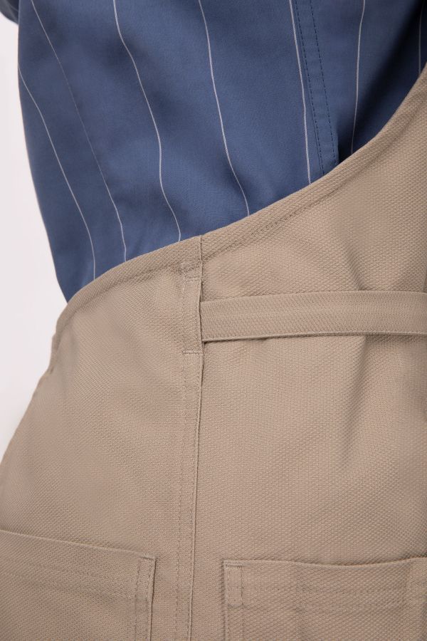 Zwei geräumige Hüfttaschen (die rechte Tasche ist nochmals unterteilt, die linke Tasche hat zusätzlich Schlaufen)Eine rechte Gesäßtasche Abgerundeter SaumGeh-Schlitznaht vorneDoppelnadelstich Verstärkte SpannungspunkteSchlaufe & Schlitz für das TaillenbandGröße: L 40 x B 95 cm
