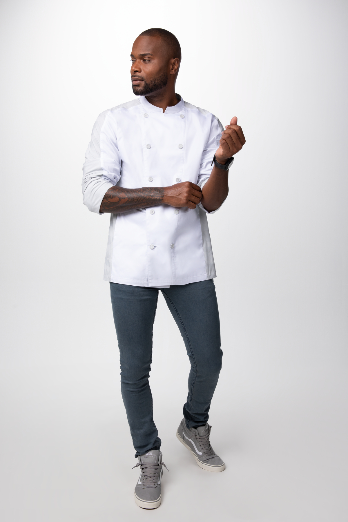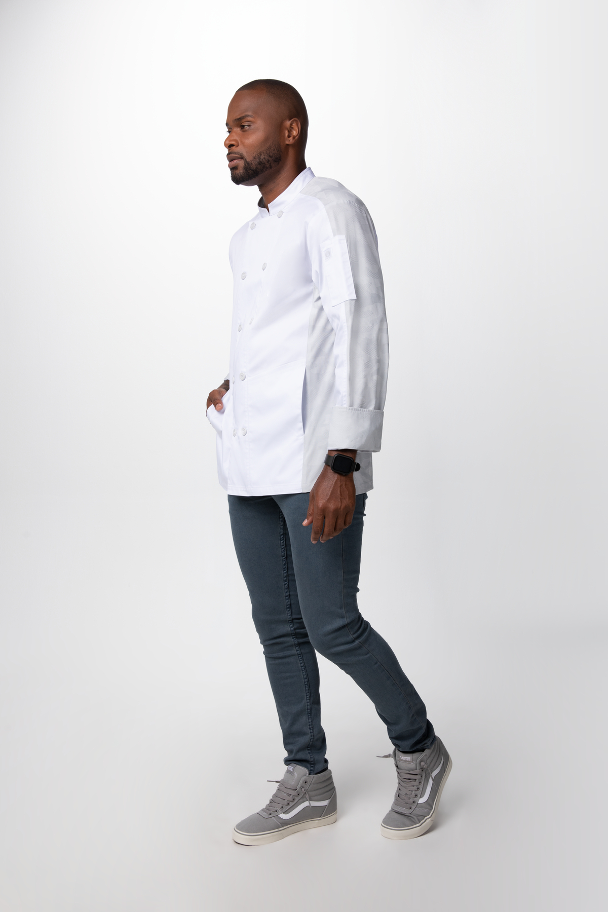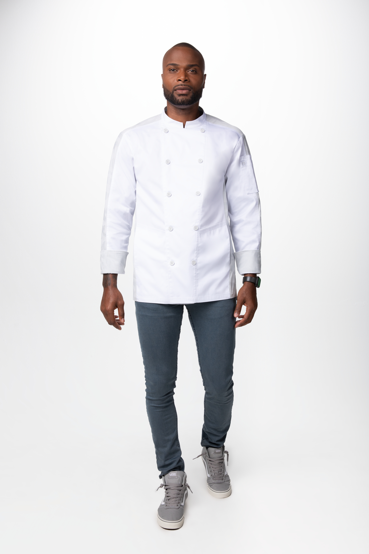 Unsere MOJAVE Kochjacke - die neueste in unserer Chef Works Urban-Collection™. Ausgestattet mit einem Stretch-Strickstoff mit Camouflage Muster, der die Mojave einzigartig und bequem macht. Werfen Sie den Grill an und lassen Sie den Rauch aufsteigen.