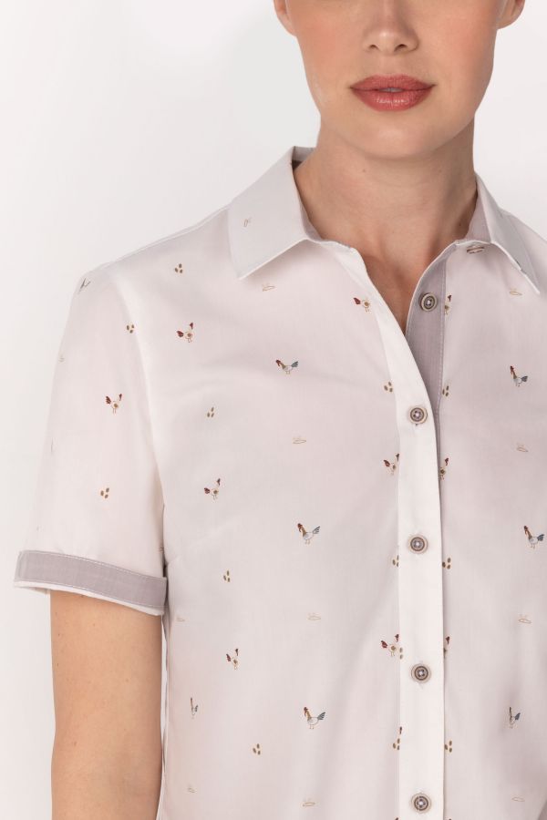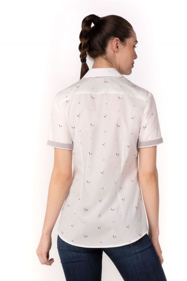 Die modernen Halbarm-Shirts der OMAHA Kollektion mit Tierdruck sind eine willkommene Abwechslung in Sachen Arbeitsuniform. Die kontrastfarbene Knopfleiste runden den Look ab. Wer möchte kann die kontrastfarbenen Armbündchen wenden.Kurze ÄrmelLinke BrusttascheRückenpasse mit FaltenFarblich angepasste KnöpfeKontrastfarbe am Krageninnenband, an der Knopfleiste und an den Armbündchen