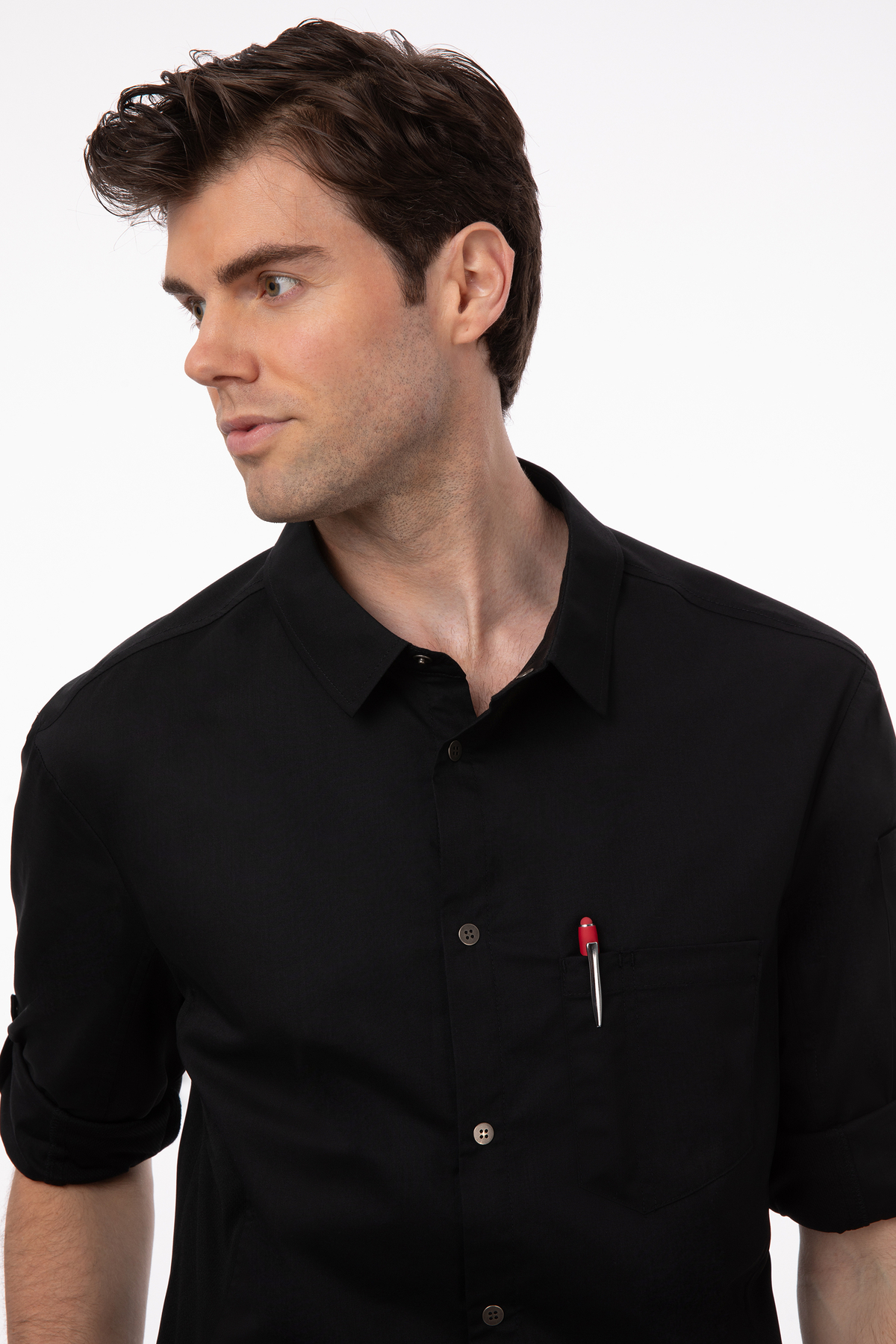 Ob in der Küche oder im Büro, das neue SEVILLE-Stretch-Herrenhemd, ist überall einsatzbereit. Die Cool-Vent-Seiteneinsätze sorgen für Abkühlung und Beweglichkeit. Das Stretch-Hemd ist mit einer perfekt dimensionierten Brusttasche mit Bleistiftunterteilung und einer Thermometertasche am linken Ärmel ausgestattet.