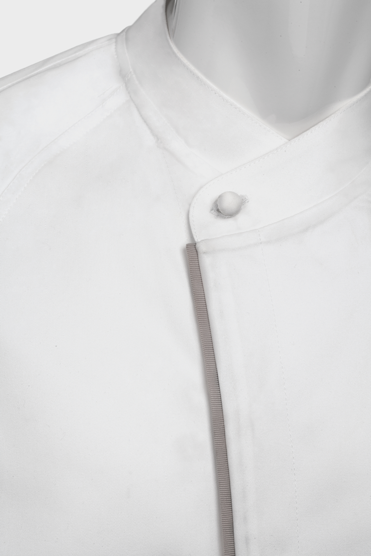Unsere Trieste Premium Kochjacke besteht aus 100% Super Combed 120, dem feinsten handverlesenen Baumwollgewebe, das selektiv in unsere Premium-Linie eingewebt wird. Durch die Verwendung des höchsten Anteils an langgekämmter Baumwolle in jedem Premium-Artikel entsteht ein Kleidungsstück, das sich seidig glatt anfühlt, glänzend wirkt und die anspruchsvollsten Stilrichtungen anspricht.