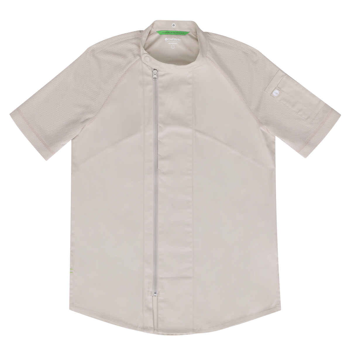 Fühlen Sie sich in unserer VARKALA Kochjacke wie neugeboren. Unsere Raglan-Kochjacke mit kurzen Ärmeln verfügt über einen versetzten Reißverschluss vorne mit Druckknopfkragen, eine Schürzenlasche hinten am Kragen zum Fixieren von Schürzenbändern, eine Thermometertasche am linken Ärmel, verdeckte Taschen vorne auf der Brust und Seitenschlitze. Mit den farblich abgestimmten Mesh-Ärmeln und der geschwungenen Rückenpasse, die aus einem recyceltem Stretch-Material bestehen, können Sie sich mühelos bewegen.