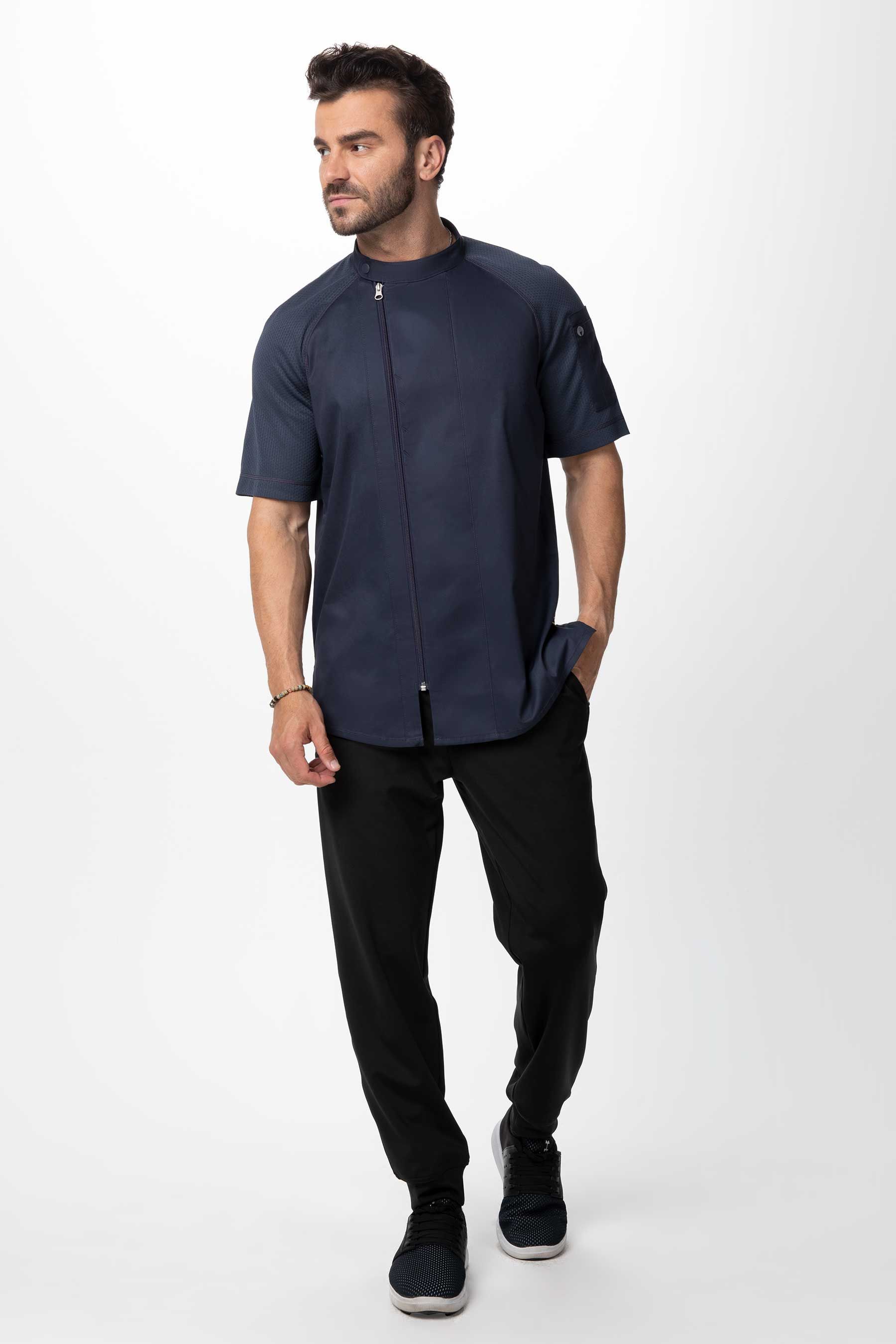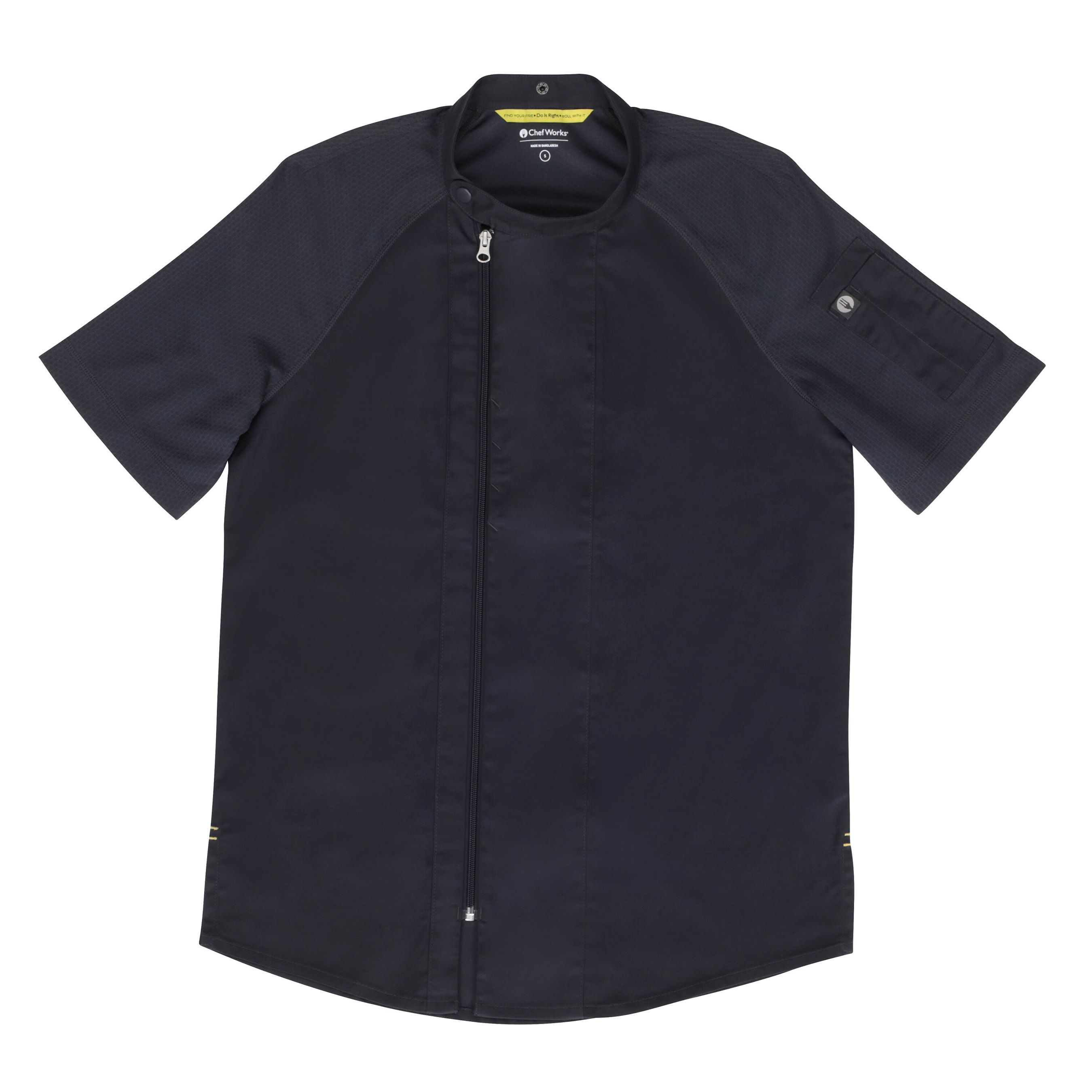 Fühlen Sie sich in unserer VARKALA Kochjacke wie neugeboren. Unsere Raglan-Kochjacke mit kurzen Ärmeln verfügt über einen versetzten Reißverschluss vorne mit Druckknopfkragen, eine Schürzenlasche hinten am Kragen zum Fixieren von Schürzenbändern, eine Thermometertasche am linken Ärmel, verdeckte Taschen vorne auf der Brust und Seitenschlitze. Mit den farblich abgestimmten Mesh-Ärmeln und der geschwungenen Rückenpasse, die aus einem recycelten Stretch-Material bestehen, können Sie sich mühelos bewegen.
