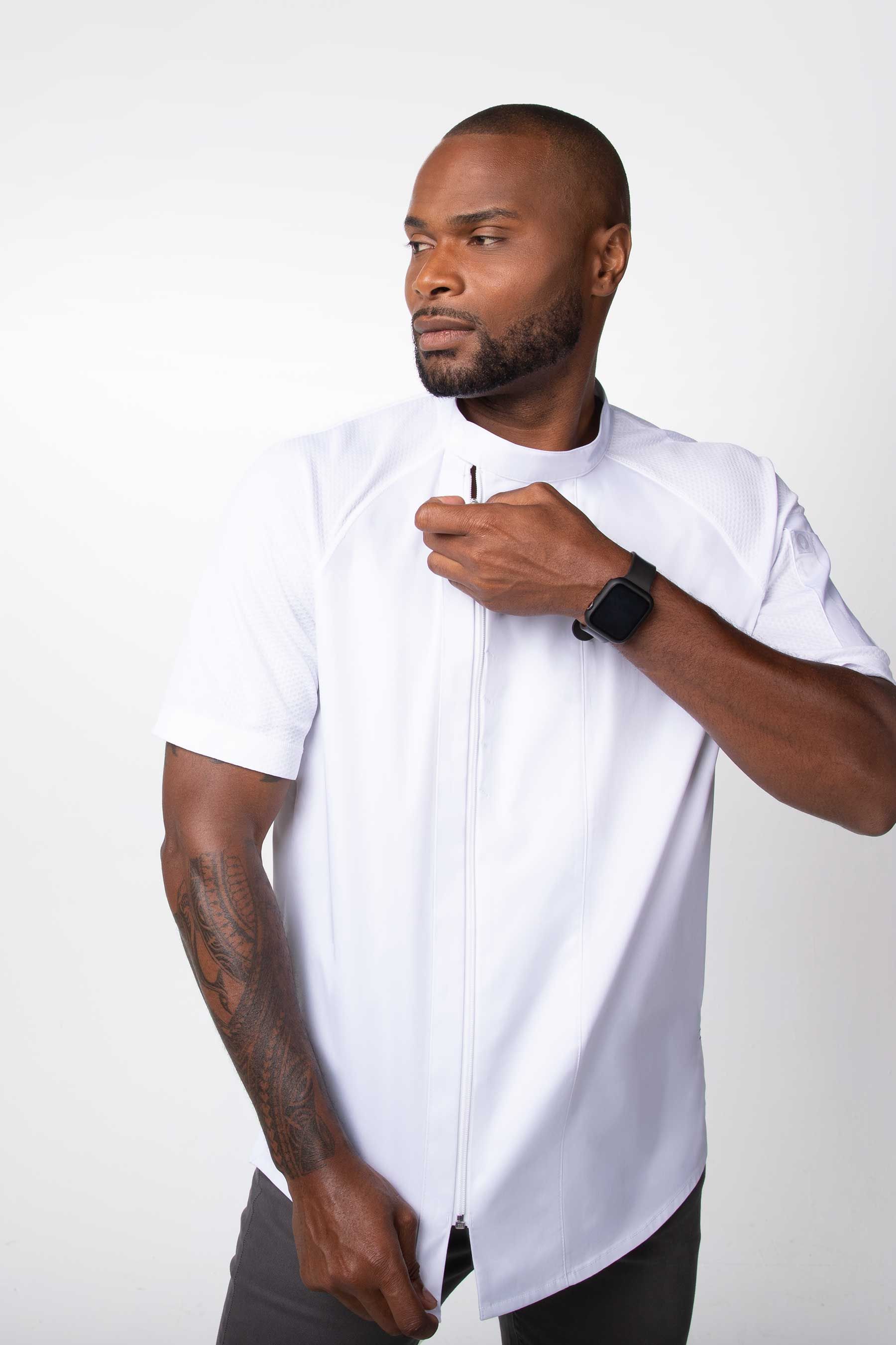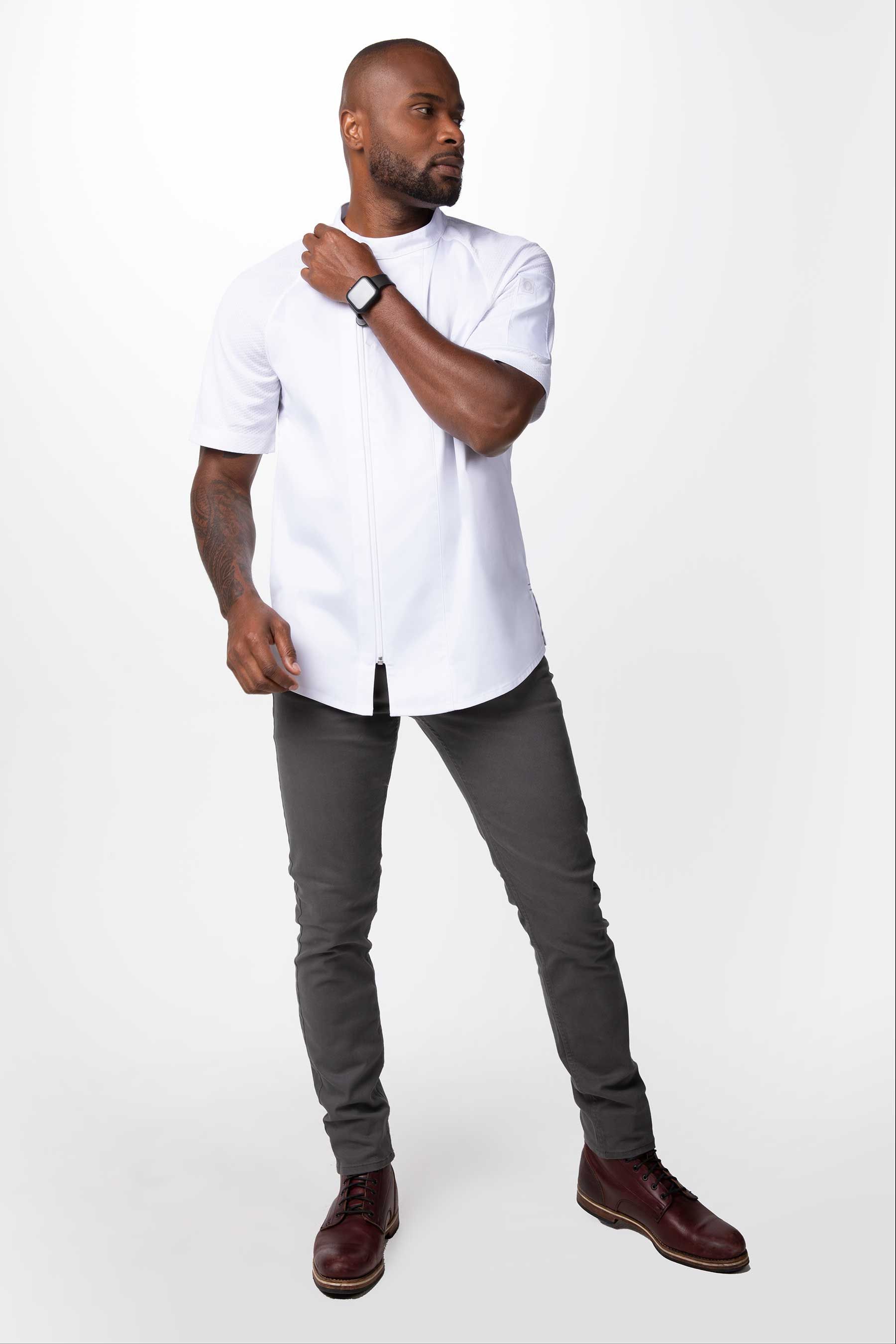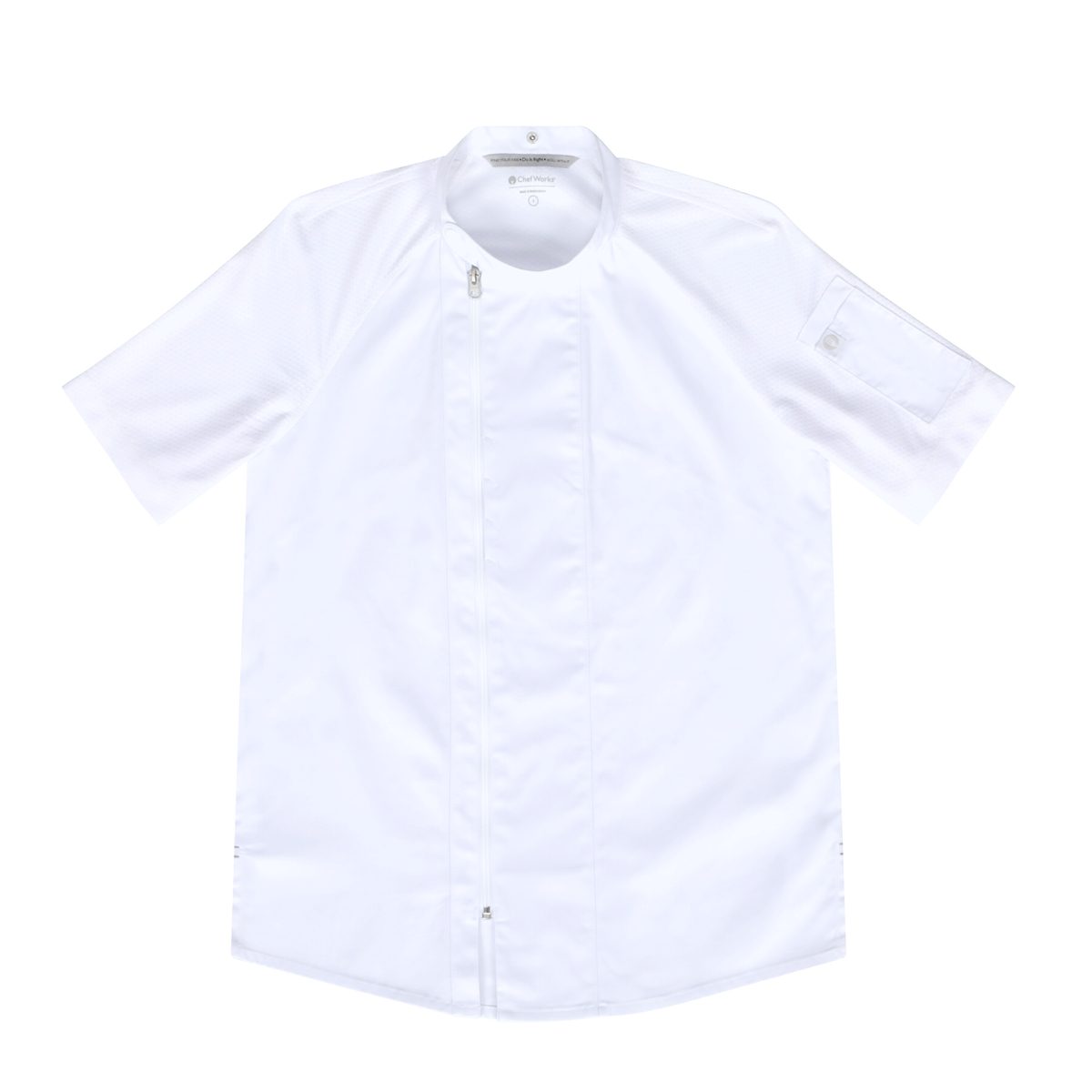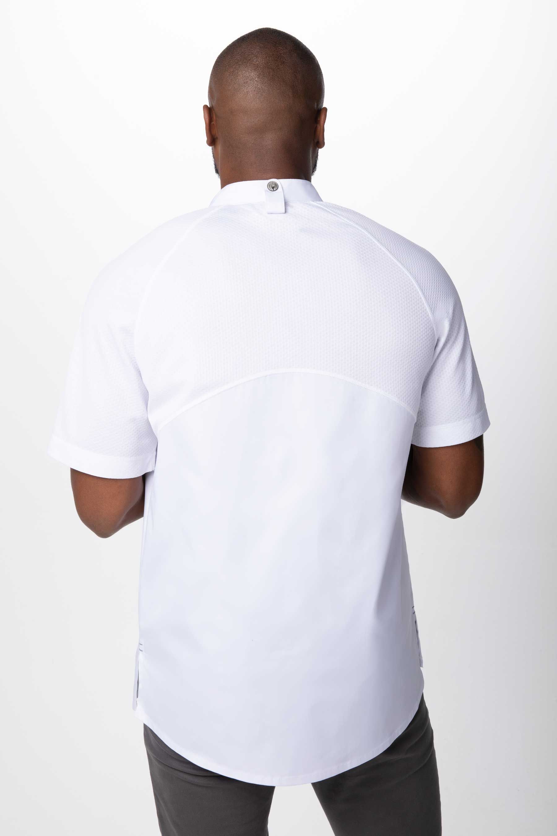 Fühlen Sie sich in unserer VARKALA Kochjacke wie neugeboren. Unsere Raglan-Kochjacke mit kurzen Ärmeln verfügt über einen versetzten Reißverschluss vorne mit Druckknopfkragen, eine Schürzenlasche hinten am Kragen zum Fixieren von Schürzenbändern, eine Thermometertasche am linken Ärmel, verdeckte Taschen vorne auf der Brust und Seitenschlitze. Mit den farblich abgestimmten Mesh-Ärmeln und der geschwungenen Rückenpasse, die aus einem recycelten Stretch-Material bestehen, können Sie sich mühelos bewegen.